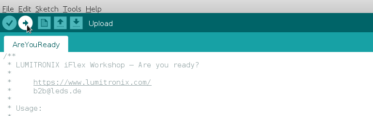 by navigating to File → Examples → LUMITRONIX iFlex Workshop → AreYouReady in